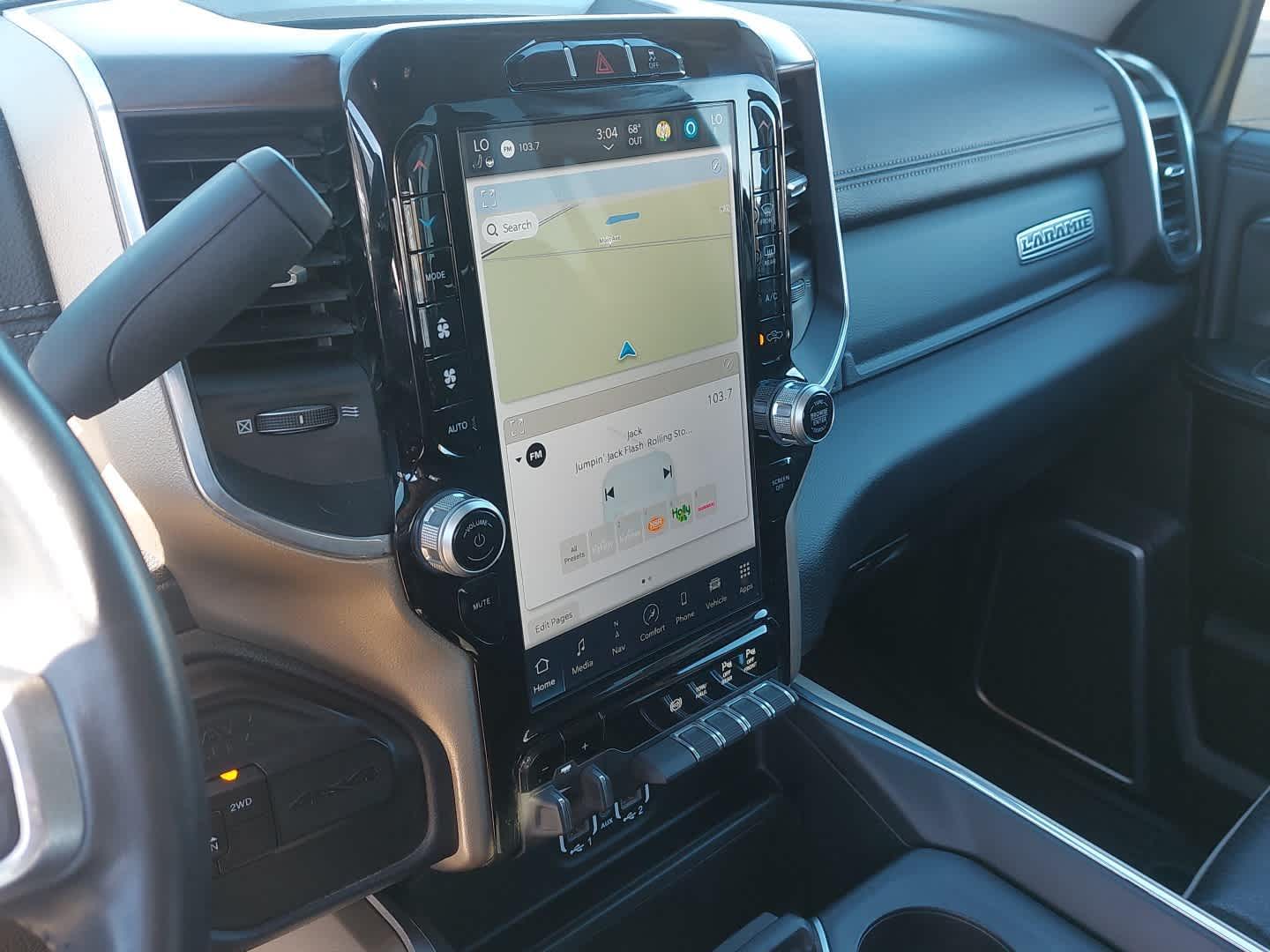 Selective Catalytic Reduction (Urea), Dual 730 Amp Maintenance Free Batteries, Cummins Turbo Diesel Badge, Heavy Duty Engine Cooling, Supplemental Heater, 220 Amp Alternator, GVWR: 11,800 lbs, Current Generation Engine Controller, Diesel Exhaust Brake, Capless Fuel Fill w/o Discriminator, Blind Spot & Cross Path Detection, Power Adjustable Pedals w/Memory, 12" Touchscreen Display, Front LED Fog Lamps, Mirror Running Lights, Forward & Reverse Utility Lights, Remote Tailgate Release, 2nd Row In Floor Storage Bins, Rear Window Defroster, Rain Sensitive Windshield Wipers, Rear Power Sliding Window, Exterior Mirrors w/Heating Element, Auto Dim Exterior Mirror, LED Reflector Headlamps, Foam Bottle Insert (Door Trim Panel), Selectable Tire Fill Alert, Radio: Uconnect 5 Nav w/12.0" Display, Power Heat Fold Memory Telescopic Mirrors, Exterior Mirrors w/Supplemental Signals, Exterior Mirrors Courtesy Lamps, Auto High Beam Headlamp Control, Exterior Mirrors w/Memory, Power Telescoping Mirrors, Auto Dimming Exterior Passenger Mirror, Auto Adjust In Reverse Exterior Mirrors, ParkSense, Tires: LT285/60R20E OWL On/Off Road, CHROME FLAT WHEEL-TO-WHEEL SIDE STEPS, Bucket Seats, Power 2-Way Passenger Lumbar Adjust, Power 2-Way Driver Lumbar Adjust, Full Length Upgraded Floor Console, TRANSMISSION: 6-SPEED AUTOMATIC 68RFE. Ram Laramie with Bright White Clearcoat exterior and Black interior features a Straight 6 Cylinder Engine with 370 HP at 2800 RPM*.