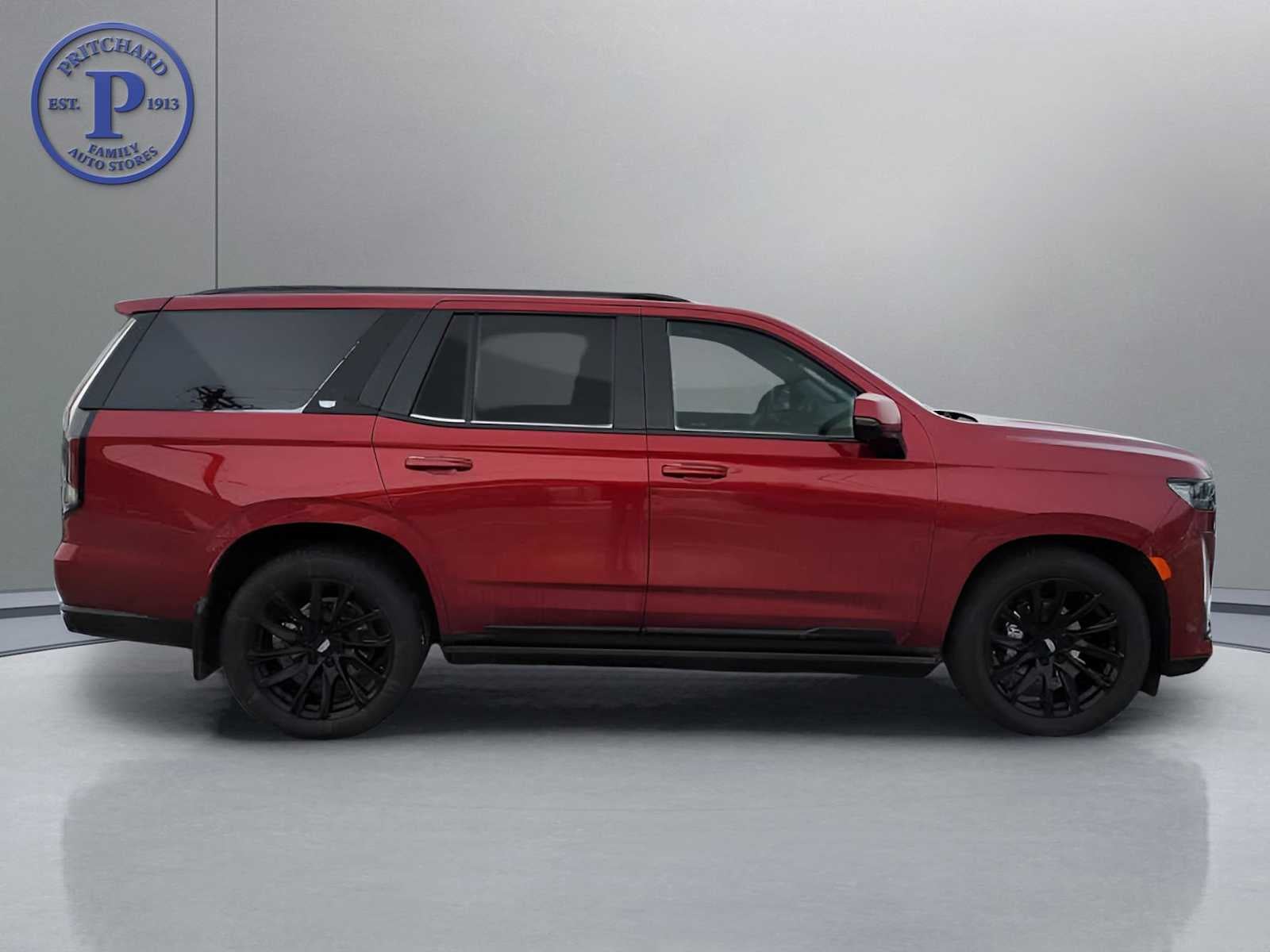 includes (SFZ) Monochrome Cadillac emblems, LPO, (RIK) Gloss Black Escalade nameplate, LPO, and (SSX) 22" 12-Spoke Gloss Black finish alloy wheels, LPO (Includes wheel locks.), ASSIST STEPS, POWER-RETRACTABLE WITH PERIMETER LIGHTING, includes (TRO) Auxiliary trailer camera, LPO, (NQH) 2-speed electronic transfer case, (PTT) Trailer Tire Pressure Monitoring System, (THS) Trailering Assist Guidelines and (V03) extra capacity cooling system, AM/FM/SiriusXM with 360L with 16.9" diagonal color information display (displays and controls navigation, music and all features and functions of the vehicle), personalized profiles for each driver's settings, Natural Voice Recognition, Phone Integration for Wireless Apple CarPlay®/Wireless Android Auto® capability for compatible phone, Connected Apps and Teen Driver (STD), Direct Injection and Variable Valve Timing, includes aluminum block construction (420 hp [313.2 kW] @ 5600 rpm, 460 lb-ft of torque [623.7 Nm] @ 4100 rpm) (STD), electronically controlled with overdrive, tow/haul mode and tap up/tap down shifting (STD). Cadillac 4WD Sport Platinum with Radiant Red Tintcoat exterior and Jet Black interior features a 8 Cylinder Engine with 420 HP at 5600 RPM*. Pritchard Promise, Local Trade In, 4 Wheel Drive